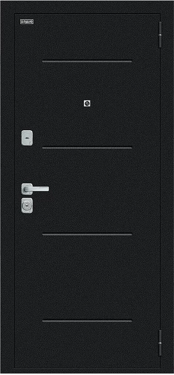 Надежная входная Дверь Браво Техно/BChrome Букле черное/Wenge Melinga премиум класса по цене 34 639 руб. Большая толщина стали защитит от проникновения в ваш дом, квартиру или коттедж. Используется очень качественная фурнитура: замки, цилиндры, ручки, защелки. Покрытие и отделка двери изготовлено под внимательным контролем производителя. Дверь имеет долгий срок службы и гарантию.